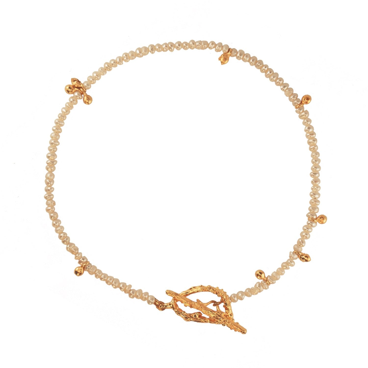 Gold Plated Silver Necklace "The Song of Sirin" with Akoya Pearls