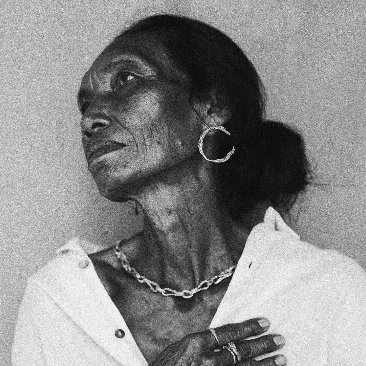 Gold Plated / Oxidized Silver Necklace with Diamond "Fingerprint & Rough Circle"