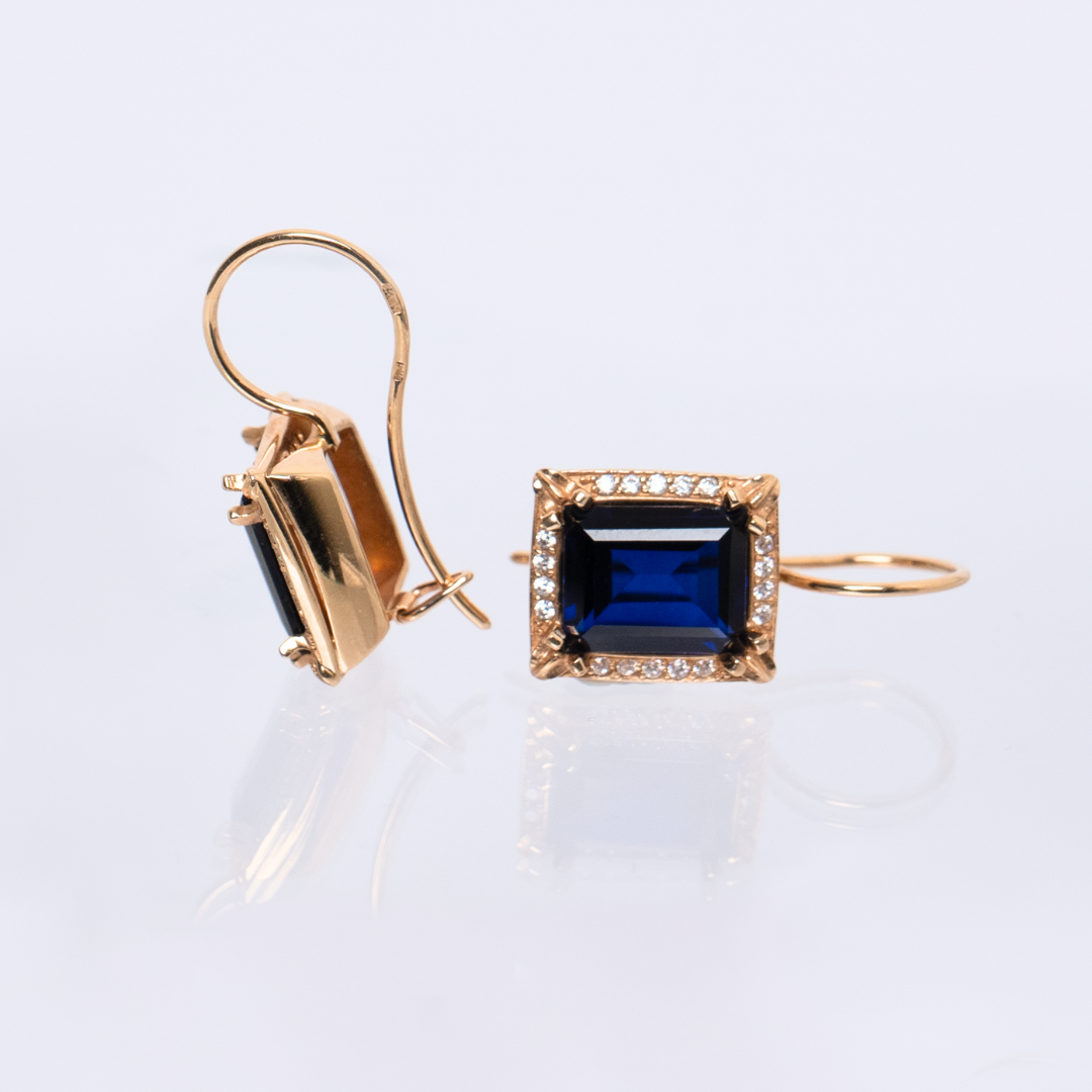 - Composition: 14k yellow gold (Au585), blue sapphires, zirconium