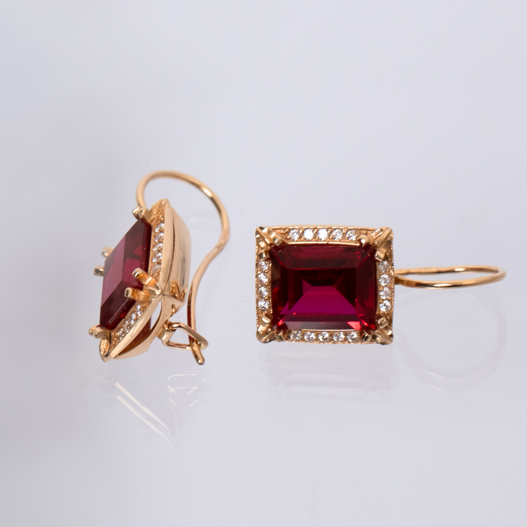 • Composition: 14k yellow gold (Au585), red rubies, zirconium