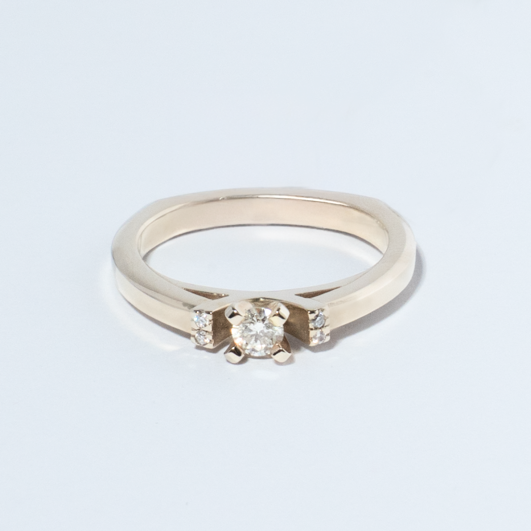 - Composition: 14k white gold (Au585), diamonds (central diamond - 0.11 ct; 4 side diamons - ~0.02 ct)