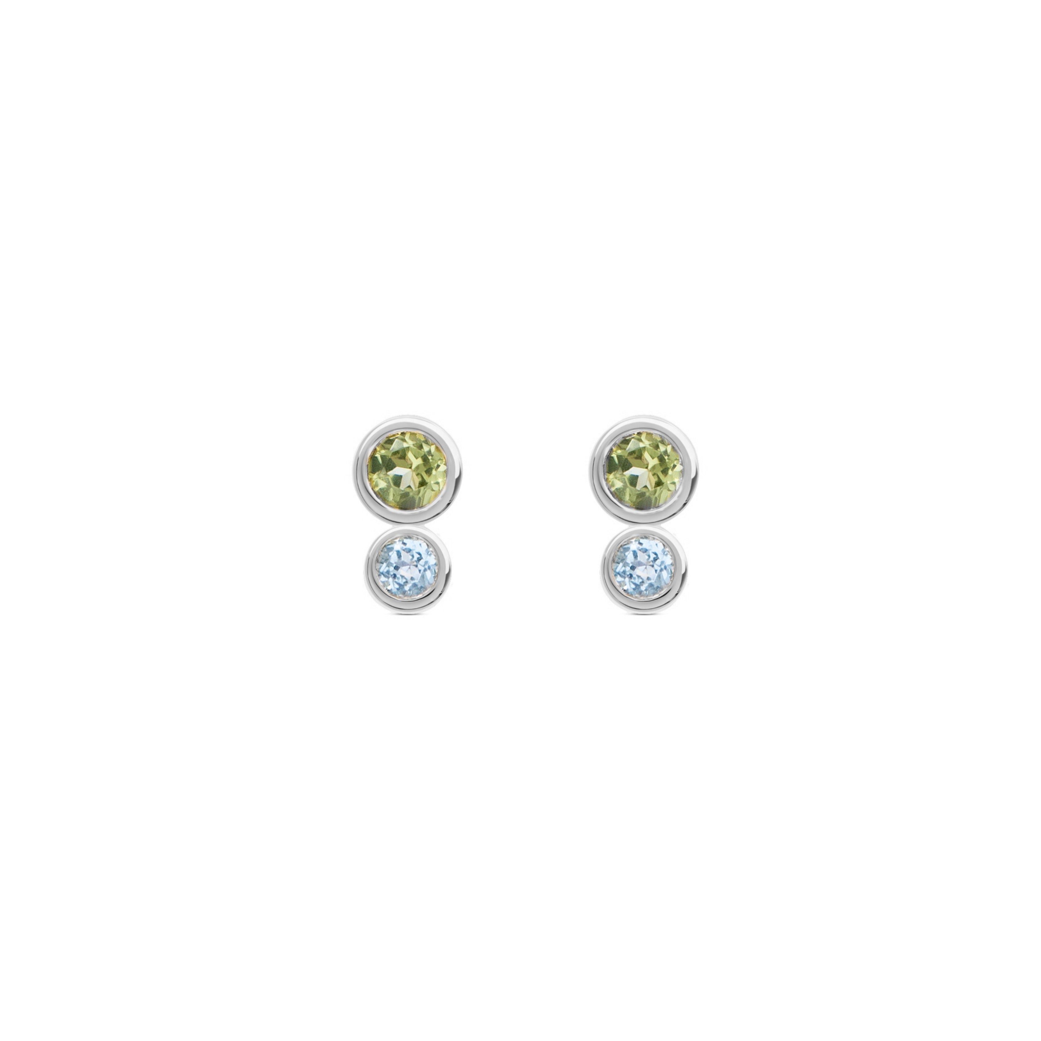 Silver Stud Earrings with Topaz and Peridot "Double"
