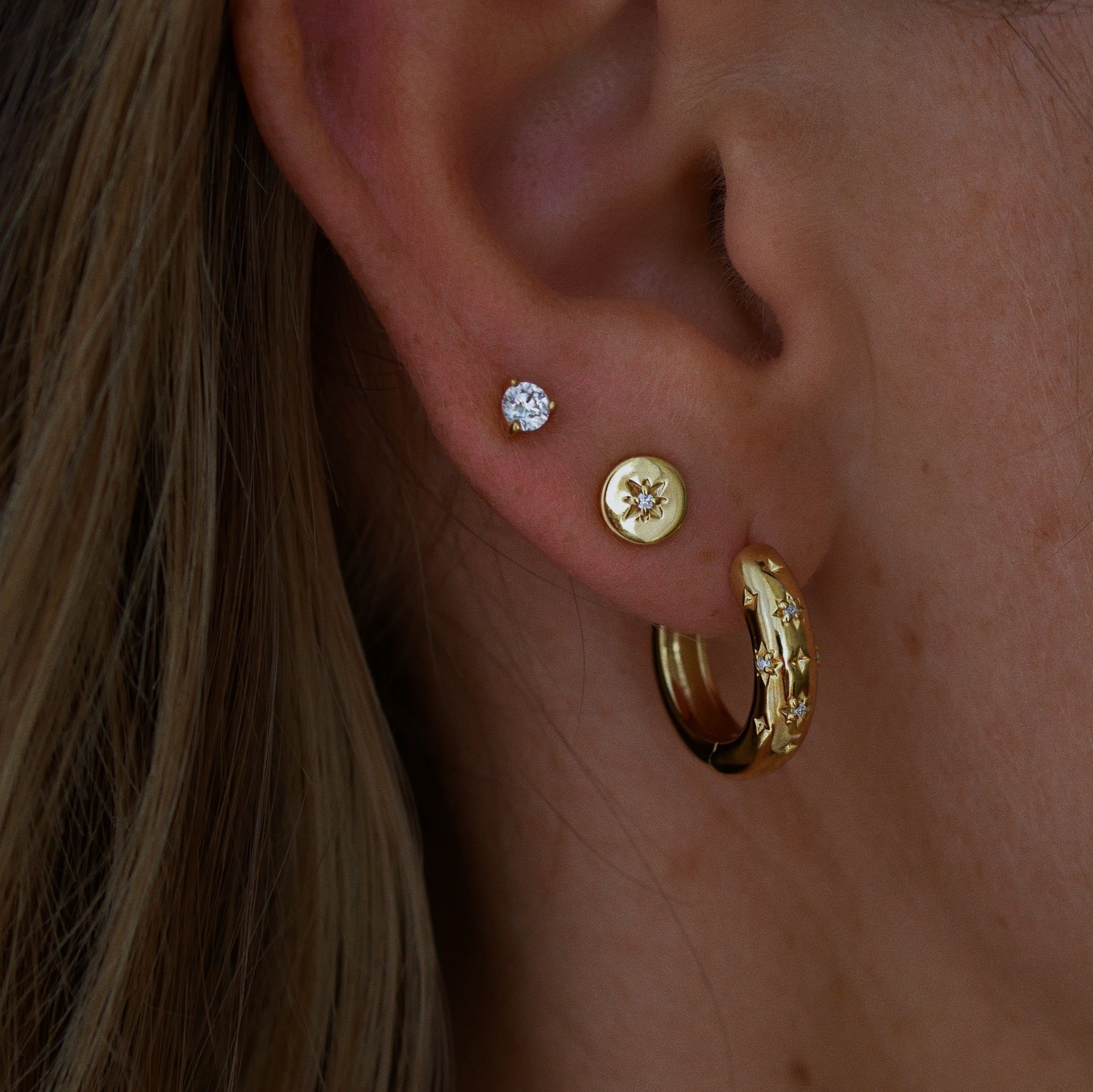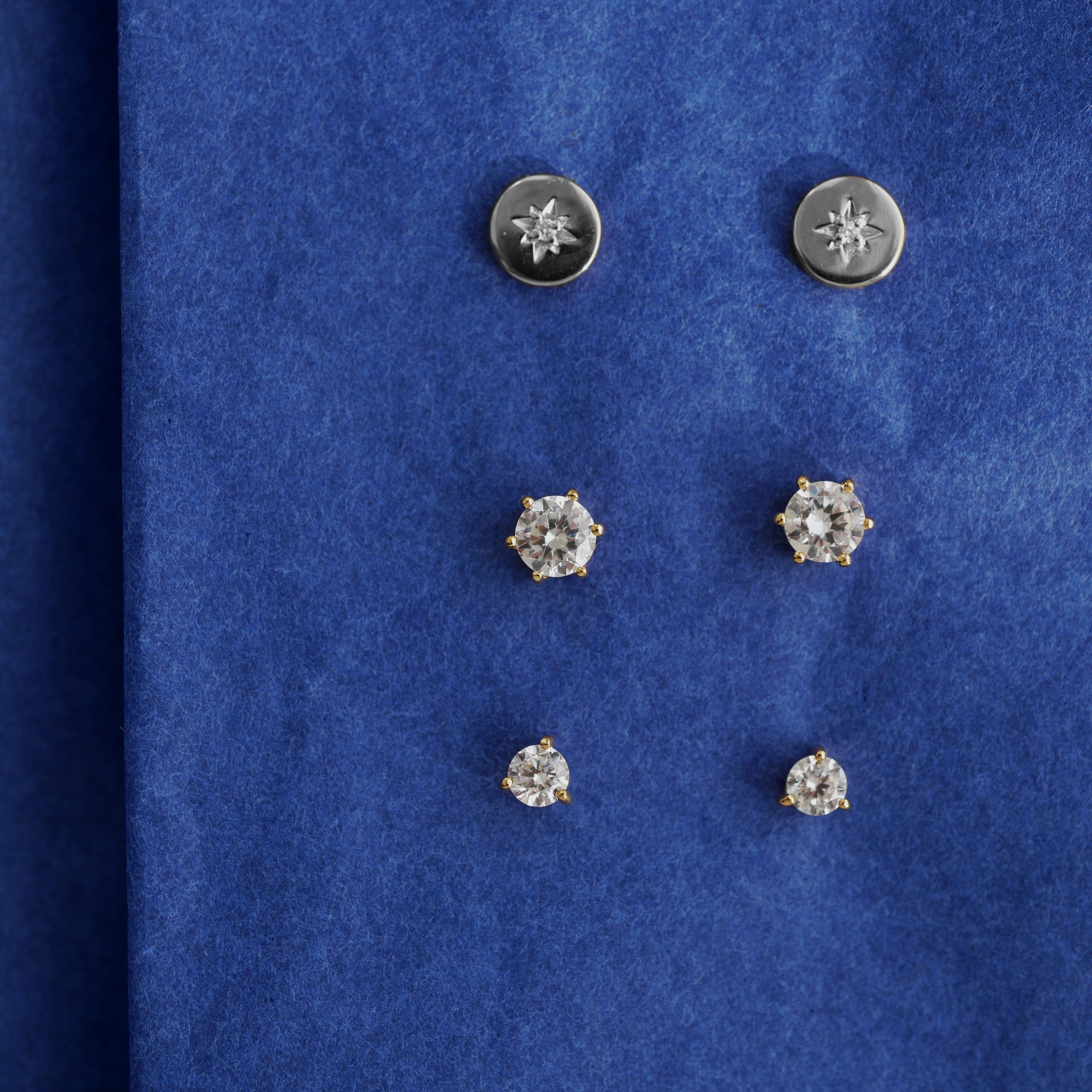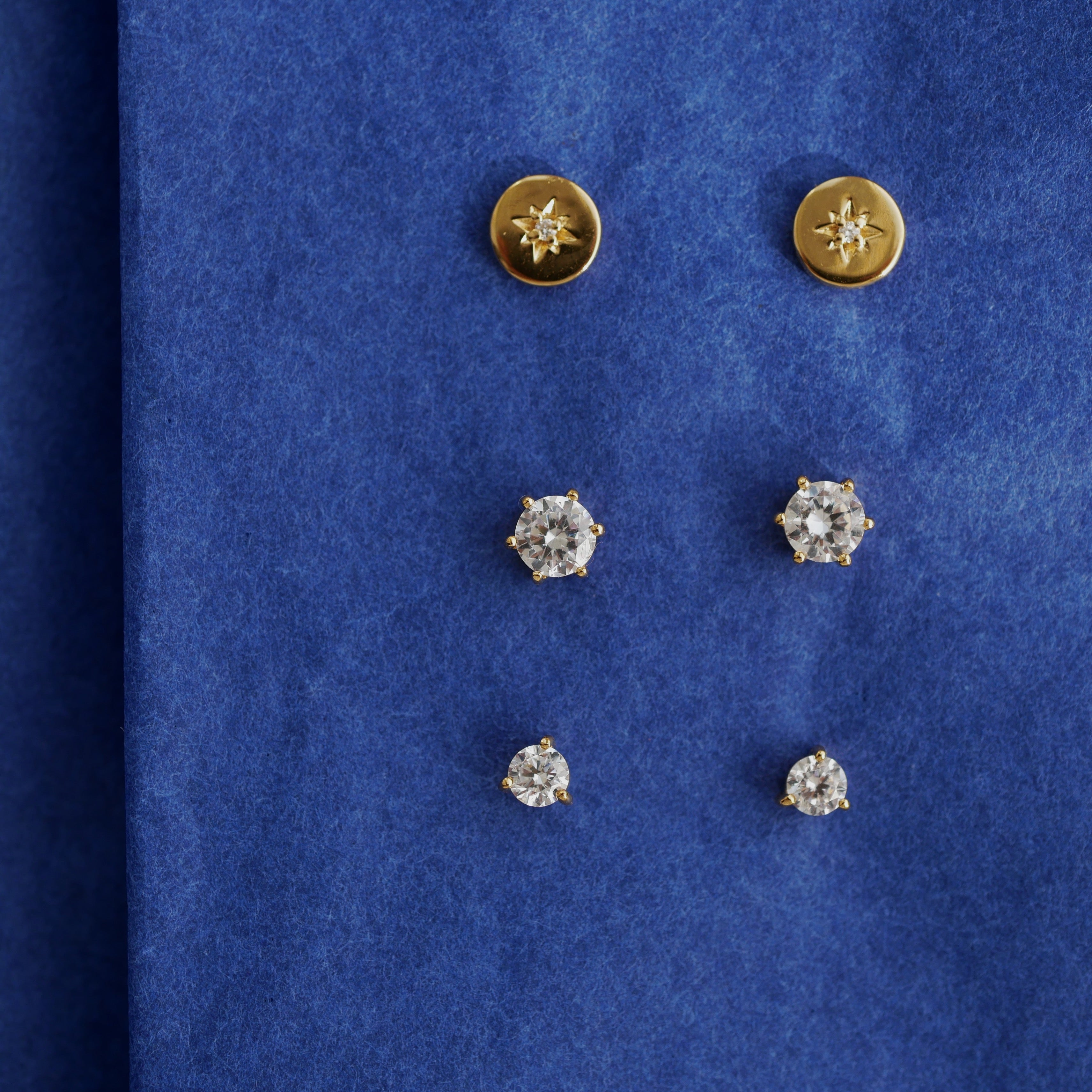 Gold Plated Silver Stud Earrings with Diamonds "North Star"