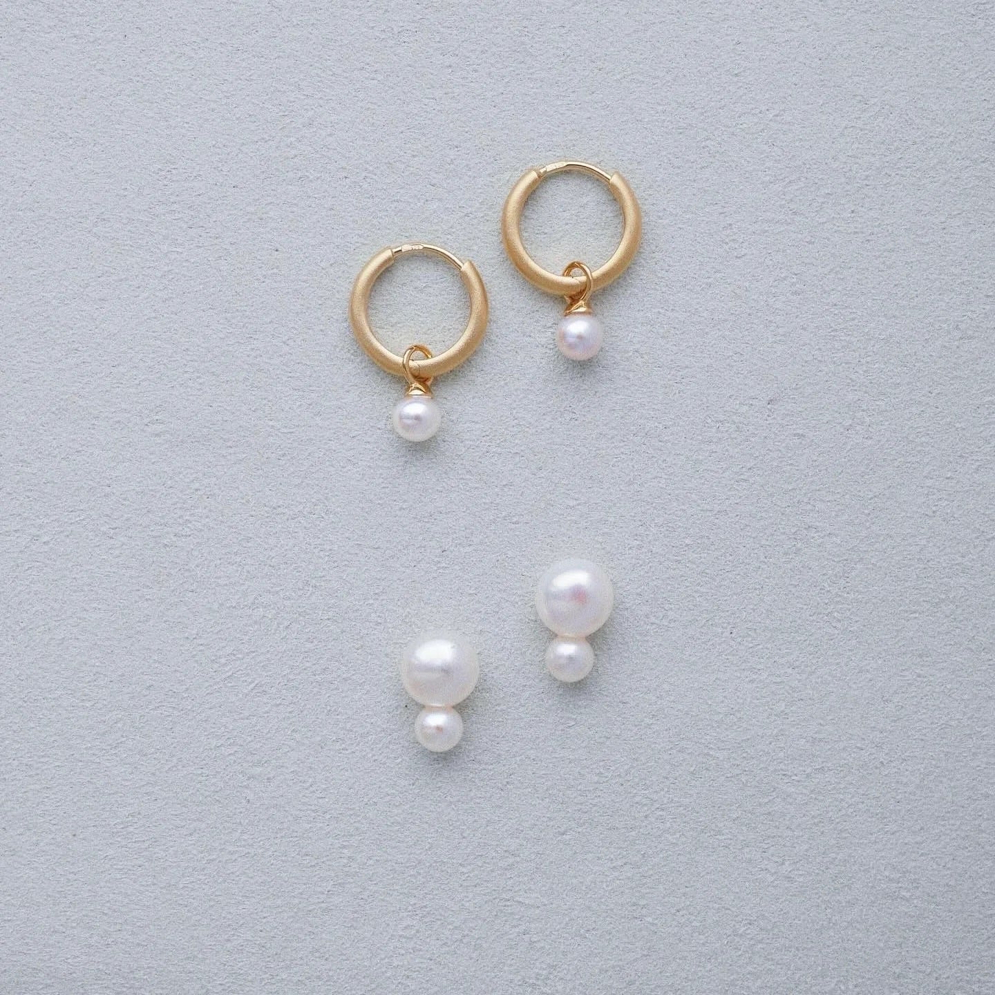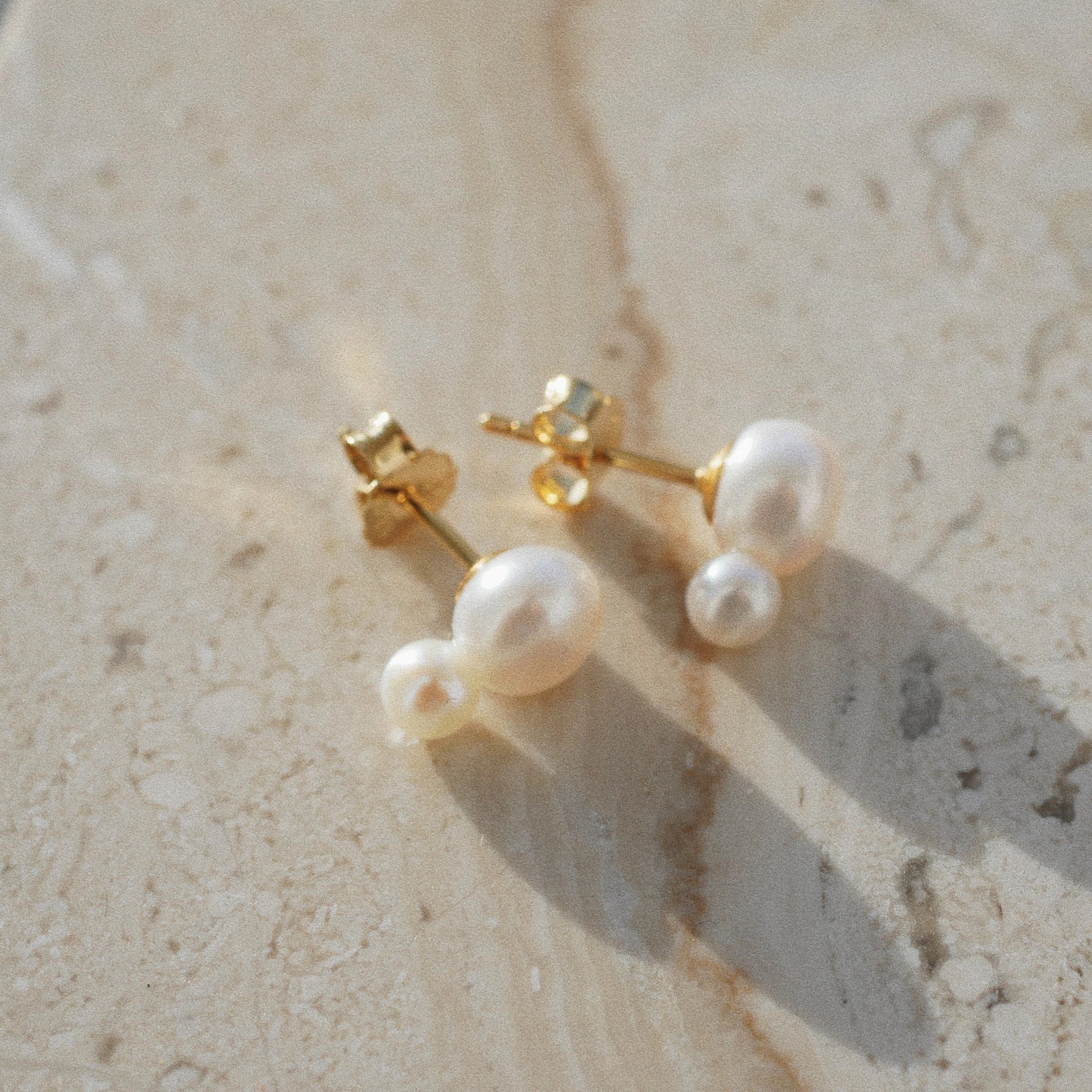 Gold Plated Silver Stud Earrings with Pearls "Double"