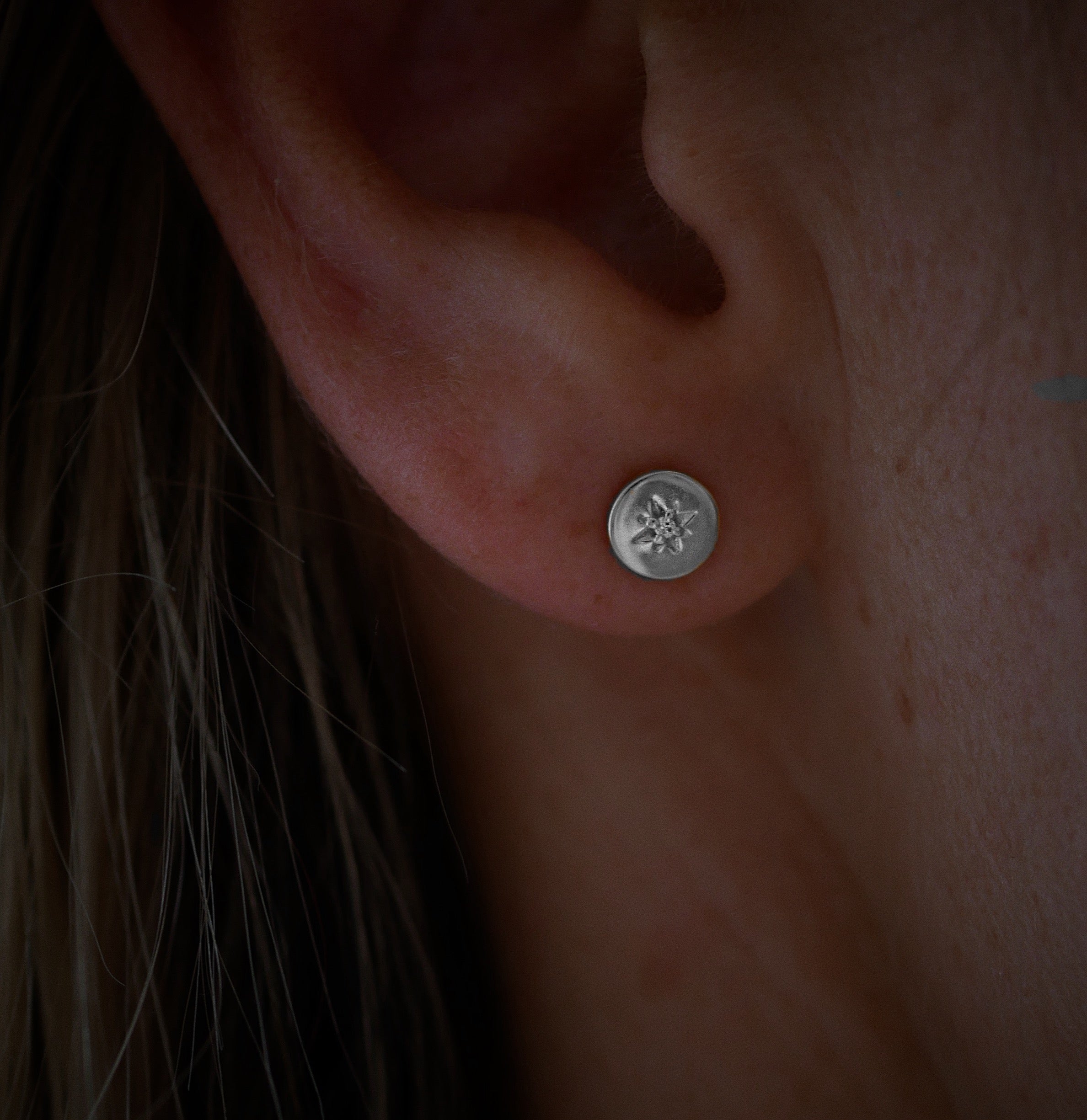 Silver Stud Earrings with Diamonds "North Star"