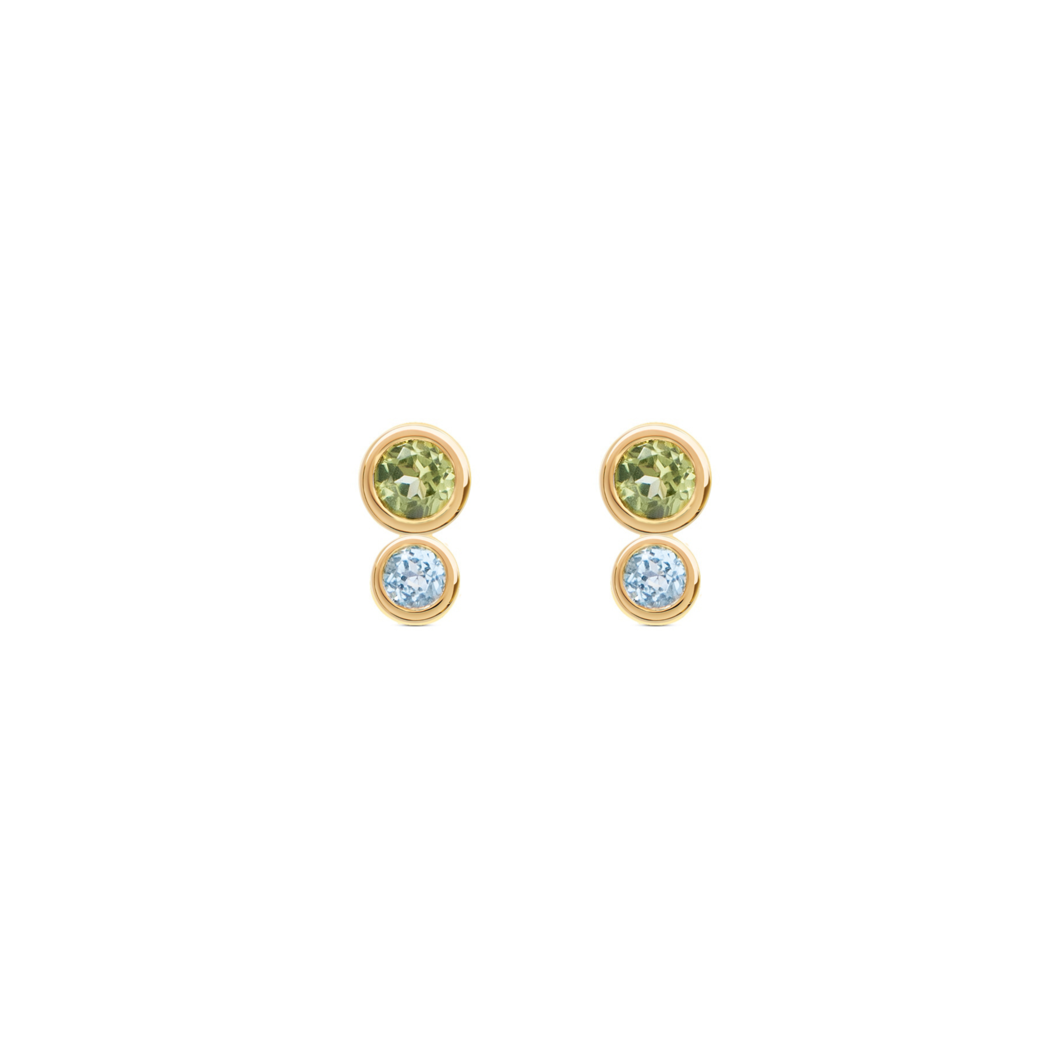 Gold Plated Silver Stud Earrings with Topaz and Peridot "Double"