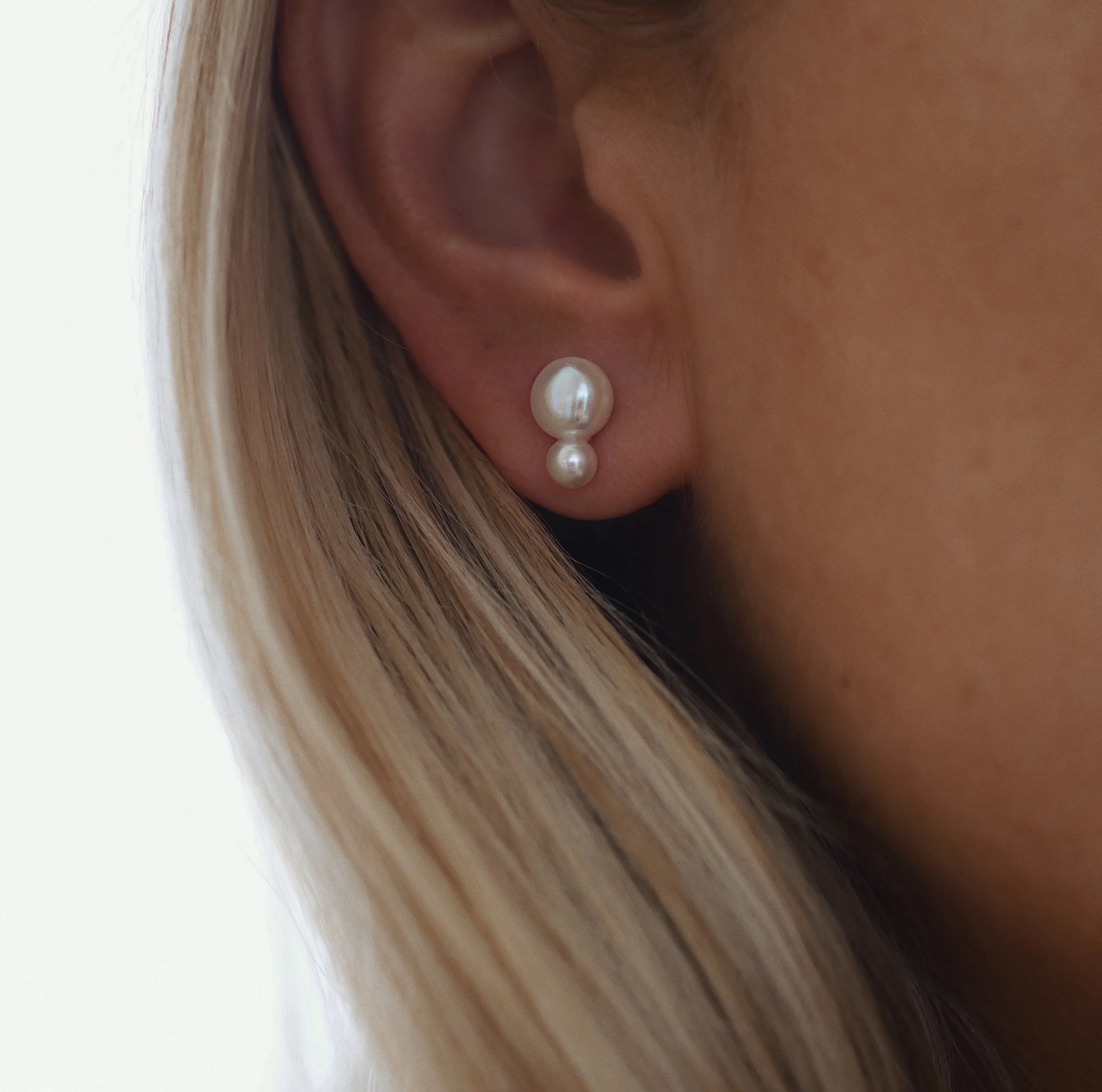 Silver Stud Earrings with Pearls "Double"