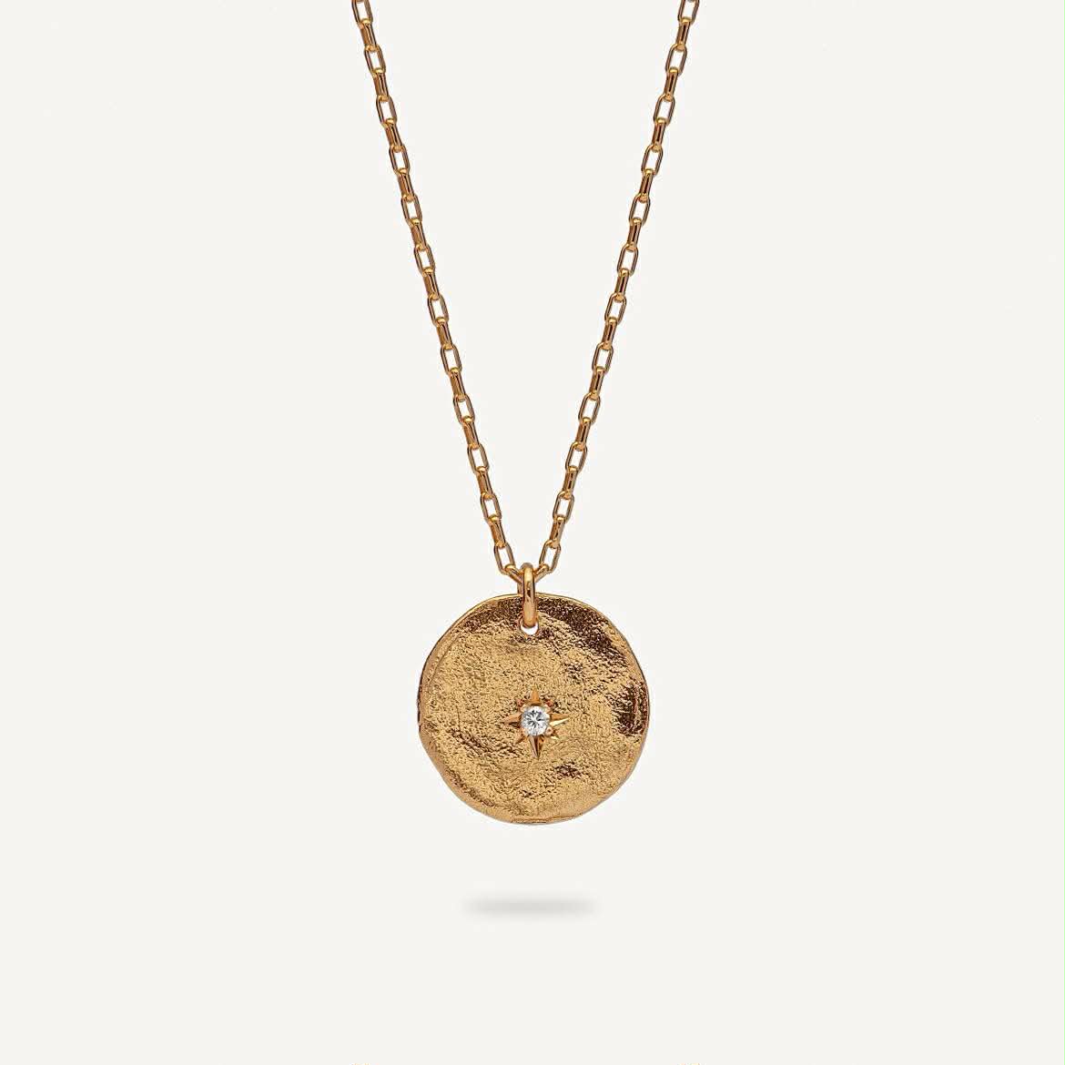 Gold Plated Silver Necklace with Diamond "Small Fingerprint Circle"