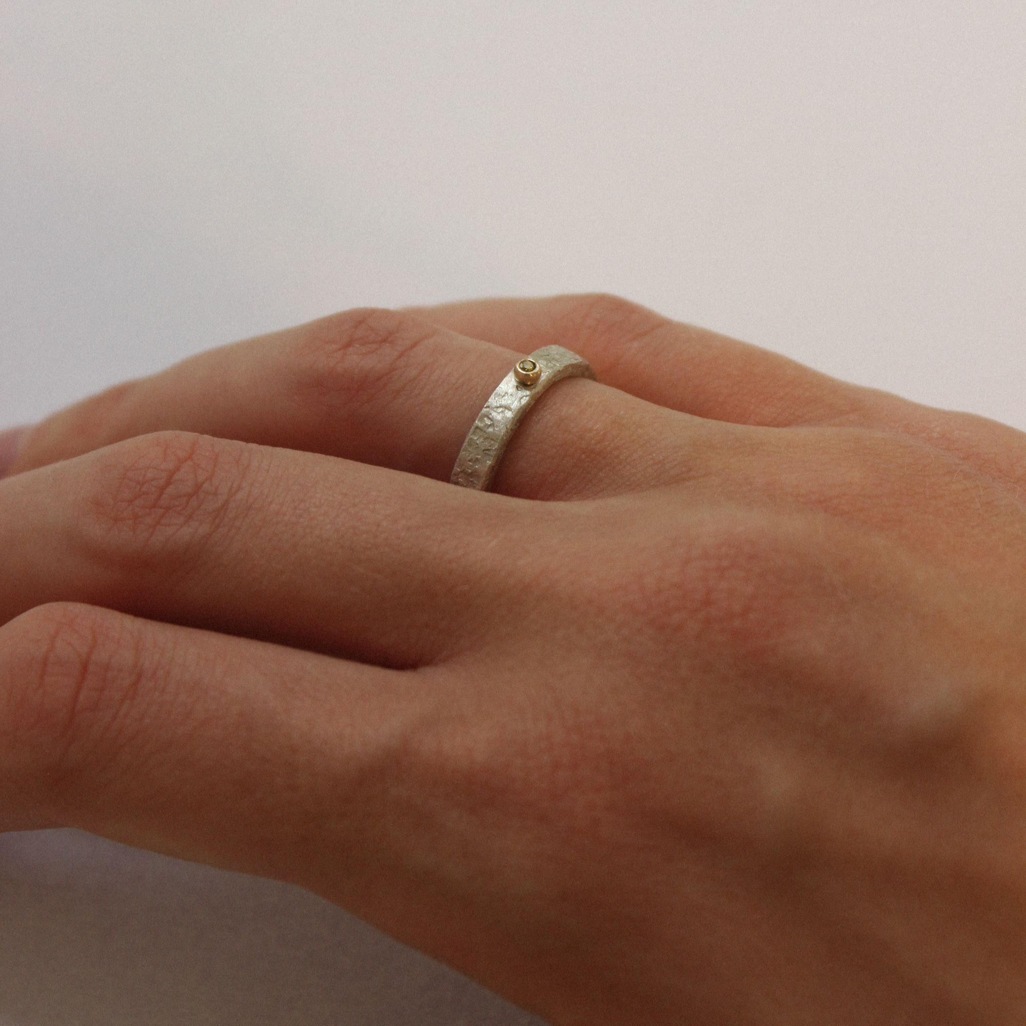 Gold Plated Silver Ring with Diamond "By the White Sea"
