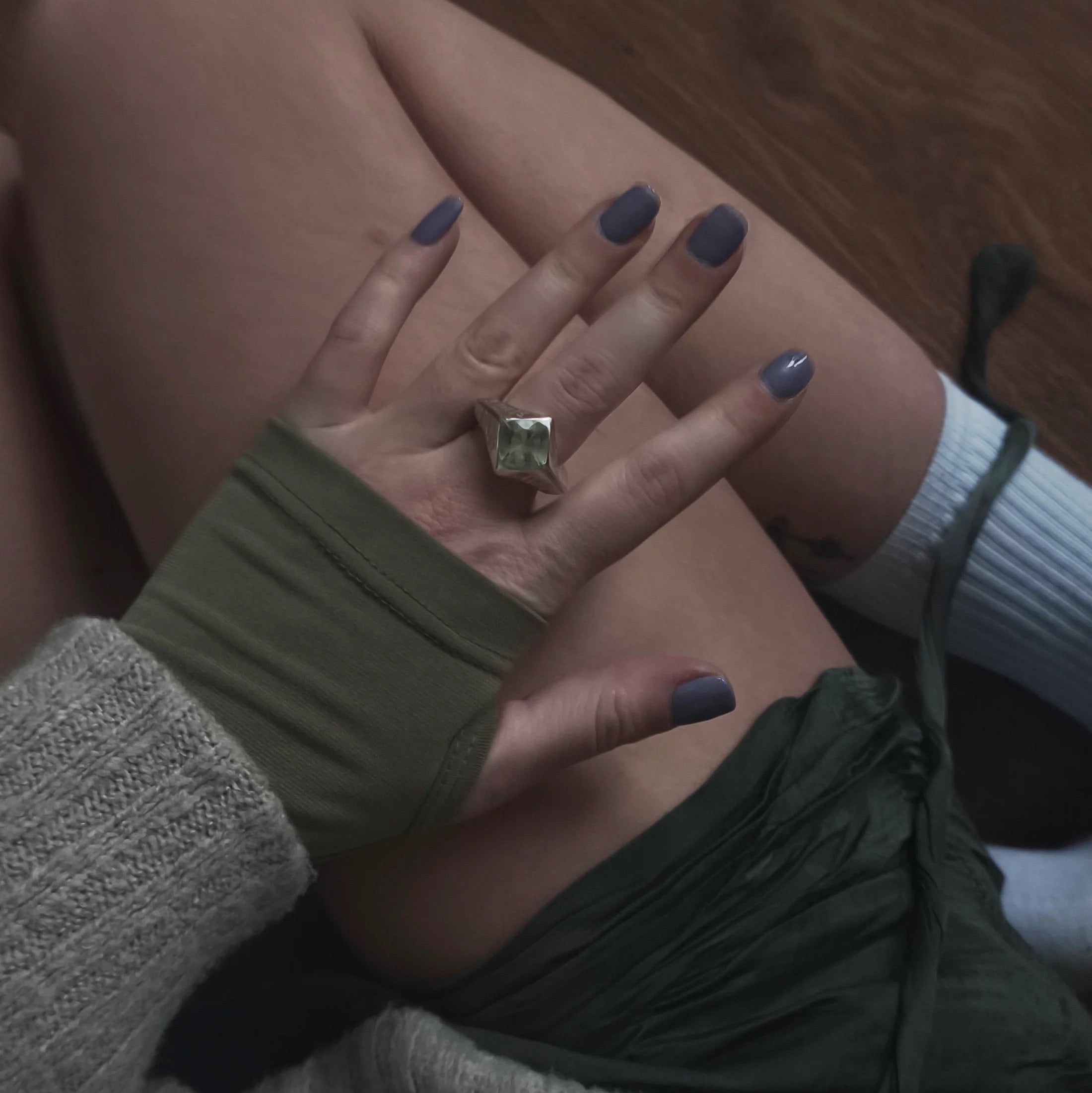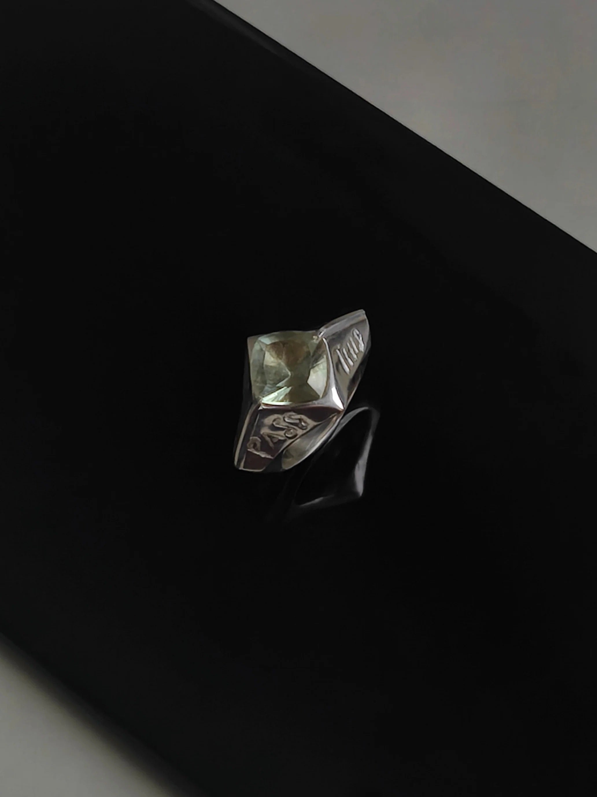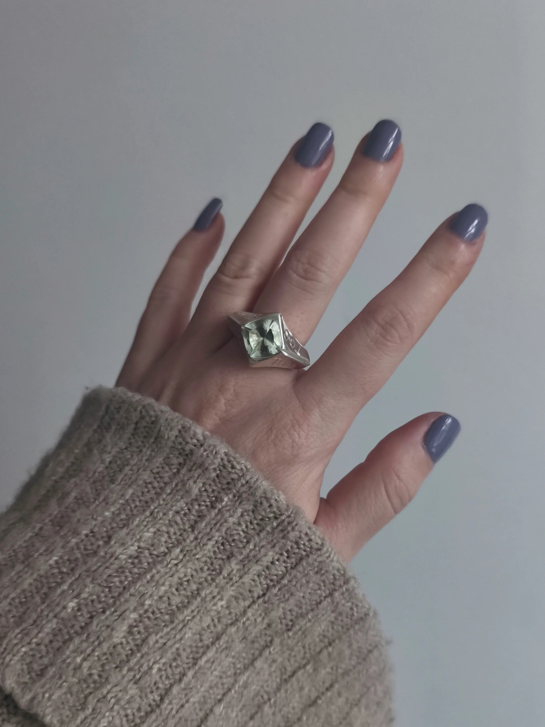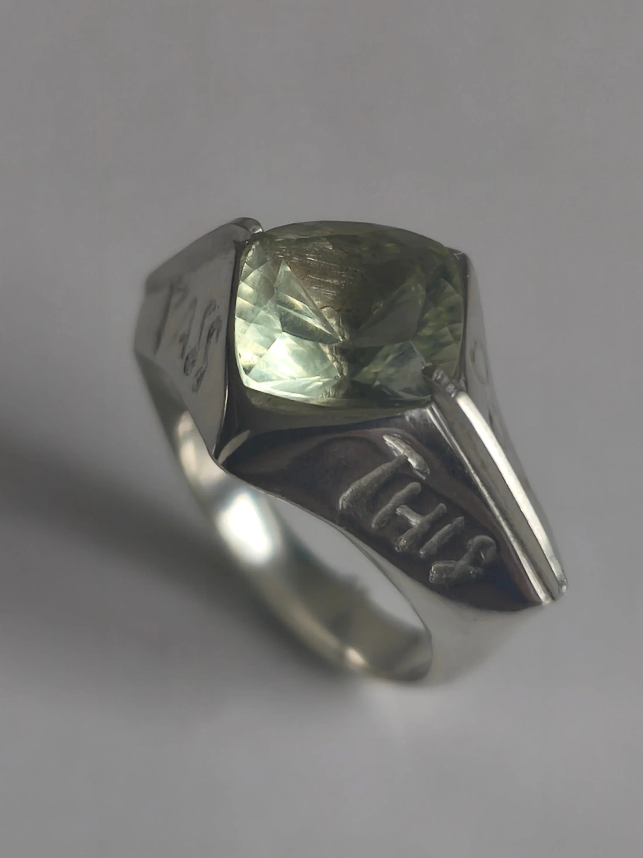 Silver Ring with Prasiolite "This Too Shall Pass"