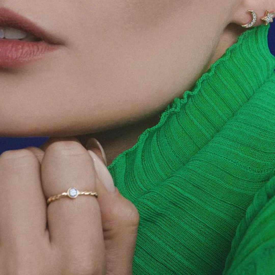 Geltono aukso žiedas su deimantu „Becoming Twisted“