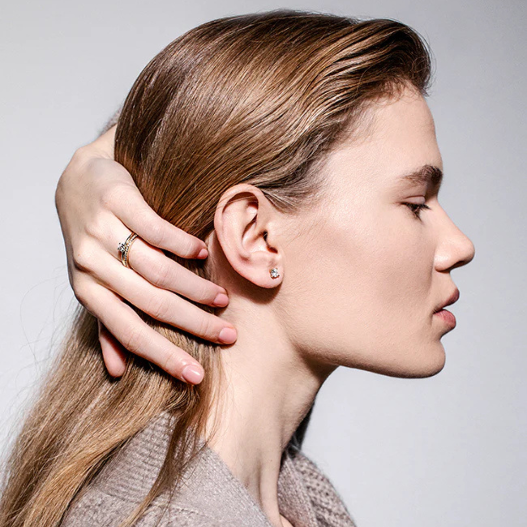 Geltono aukso žiedas / auskaras „Reflection Embrace“