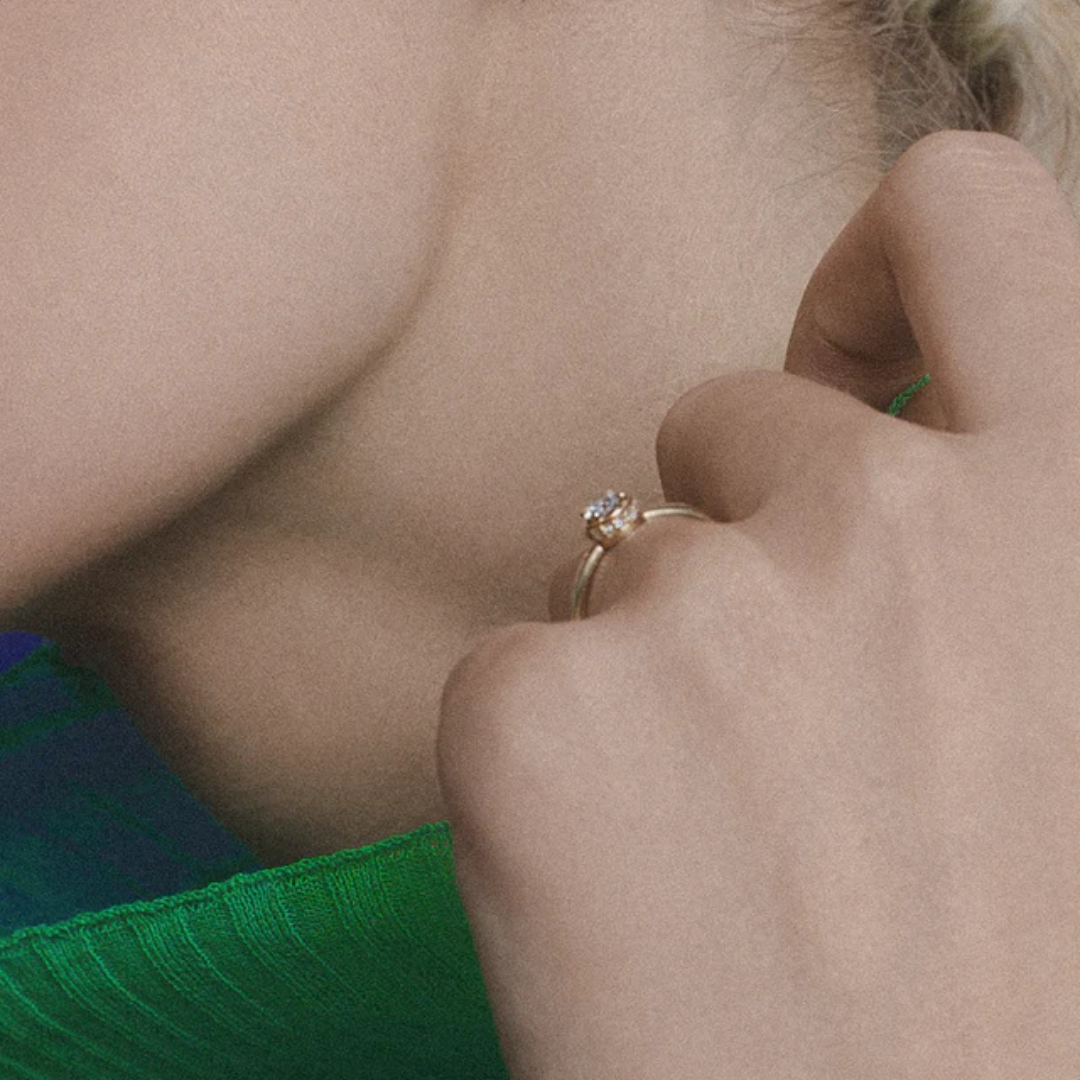 Geltono aukso žiedas su deimantu "Duo Petite"