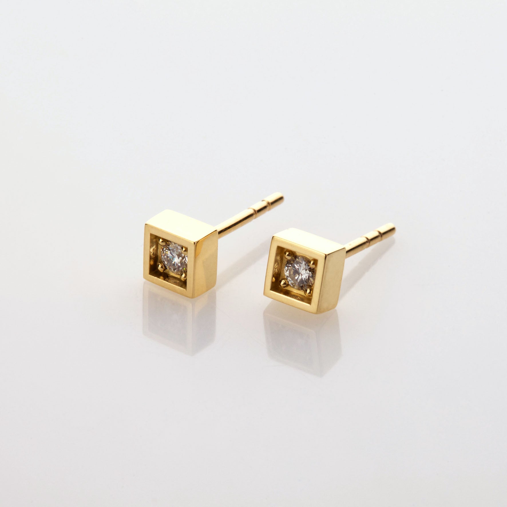 Geltono aukso auskarai su deimantais „Mini Squares“
