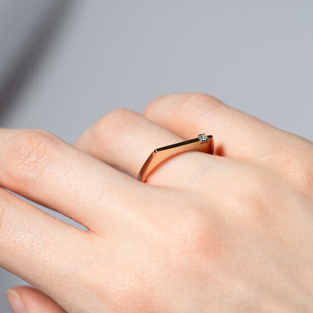 Minimalistinis geltono aukso žiedas su preciziškai įtvirtintu princess formos deimantu. Rafinuotas dirbinys, kuris suteikia subtilaus elegantiškumo kasdieniam stiliui ar moderniam įvaizdžiui.