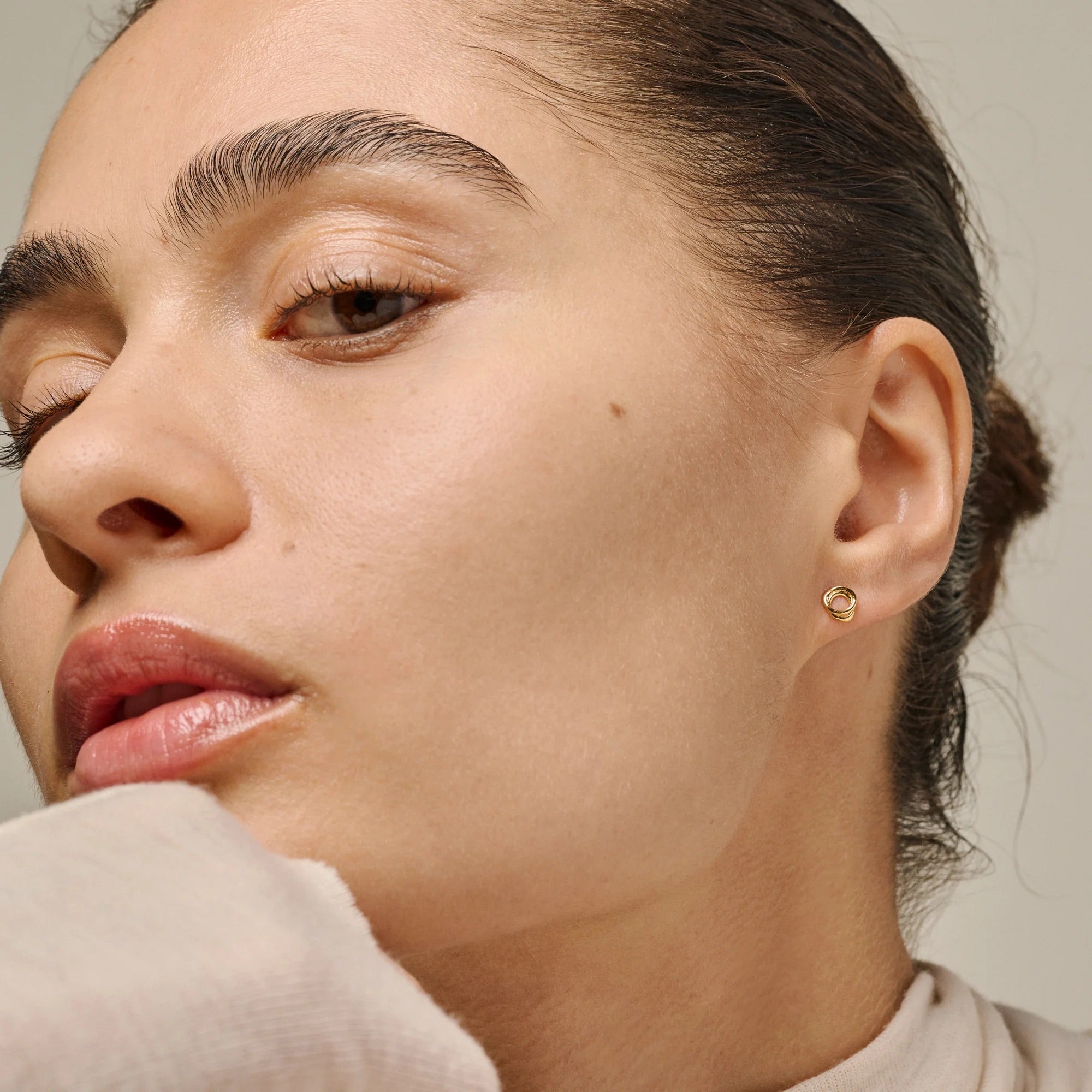 Šie auskarai – tai elegantiška ir organiška klasikinio apskritimo interpretacija. Du švelniai susukti, tarpusavyje apsiviję žiedai sukuria harmoningą ir šiuolaikišką dizainą. Skulptūriška, subtili forma leidžia šiuos auskarus dėvėti kasdien.