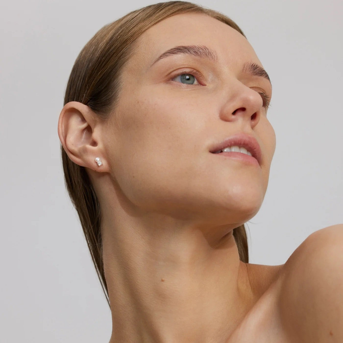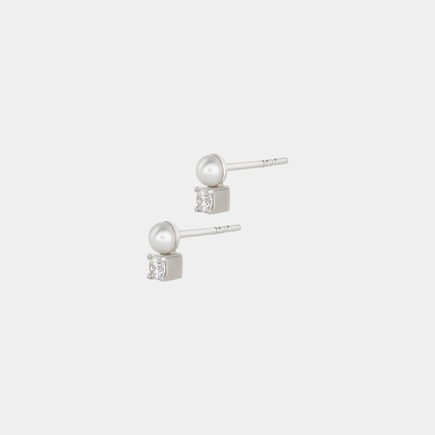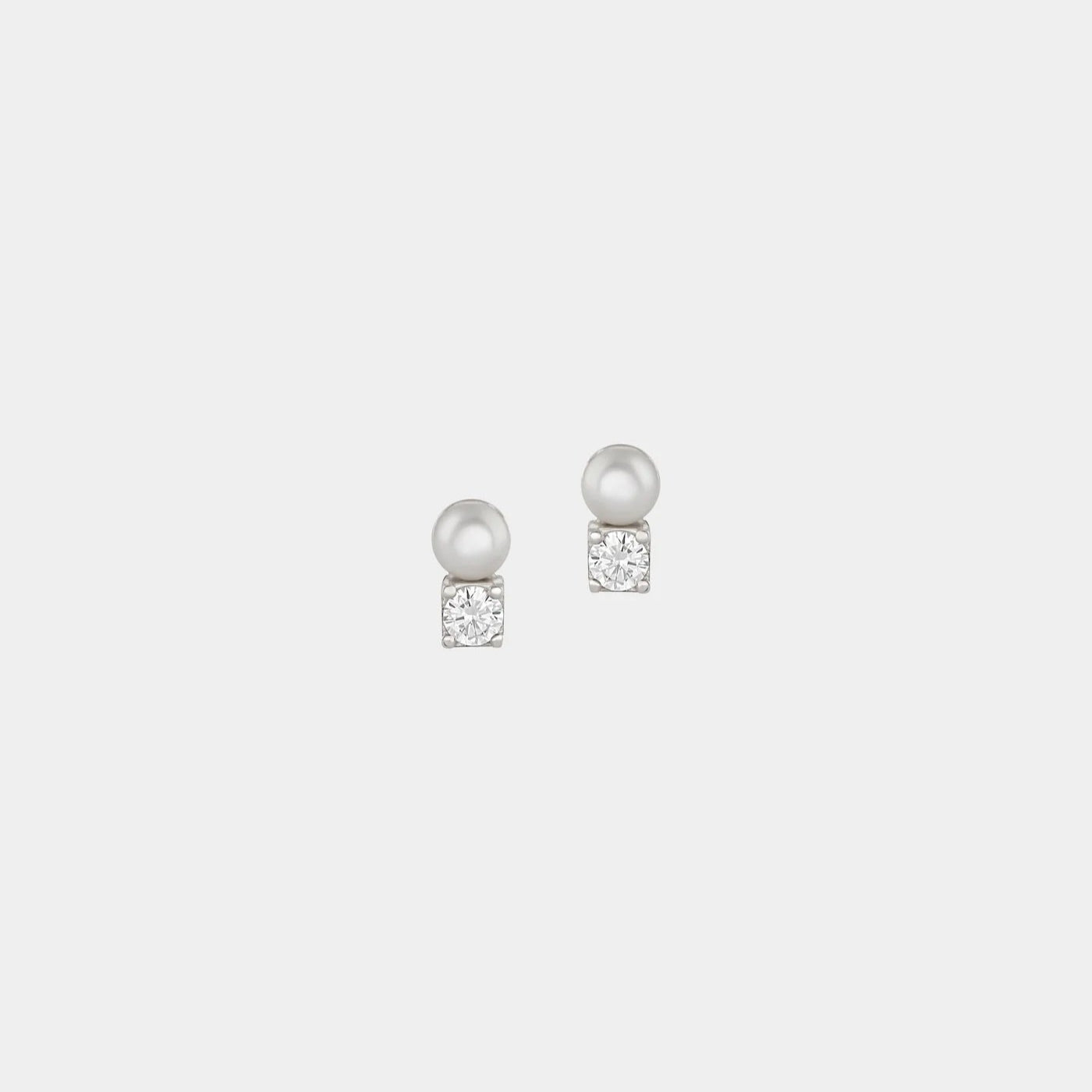 Minimalistiniai sidabriniai auskarai su subtiliu gėlavandenio perlo ir balto cirkonio duetu. Švarios geometrinės formos tvirtinimas ir poliruotas paviršius užtikrina ilgaamžiškumą bei modernų, elegantišką įvaizdį, tinkantį kasdieniam nešiojimui.